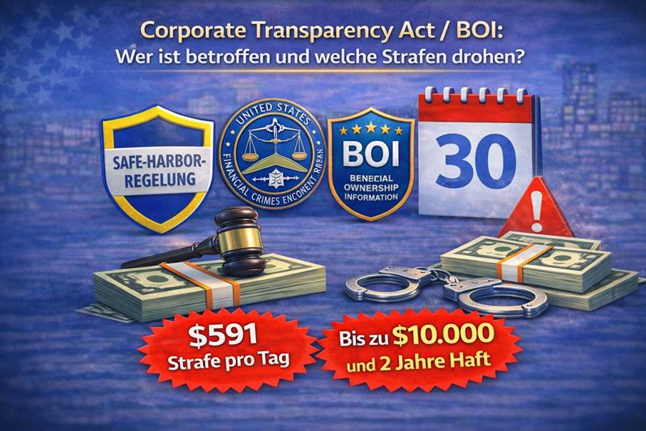 Obwohl FinCEN (Financial Crimes Enforcement Network) seit März 2025 per Interim Final Rule einheimische US-Entitäten und -Personen exkludiert, ist das Reporting im Zusammenhang mit BOI (Beneficial Ownership Information) teilweise weiterhin relevant.