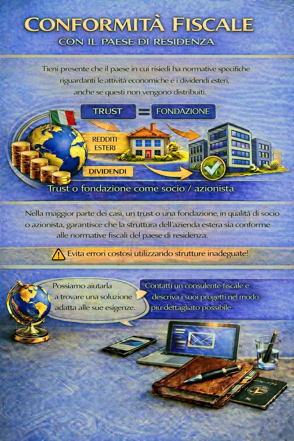 Il suo Paese di residenza può prevedere obblighi fiscali e di dichiarazione per attività d’impresa estere e redditi da dividendi, in alcuni casi persino quando gli utili non vengono distribuiti.